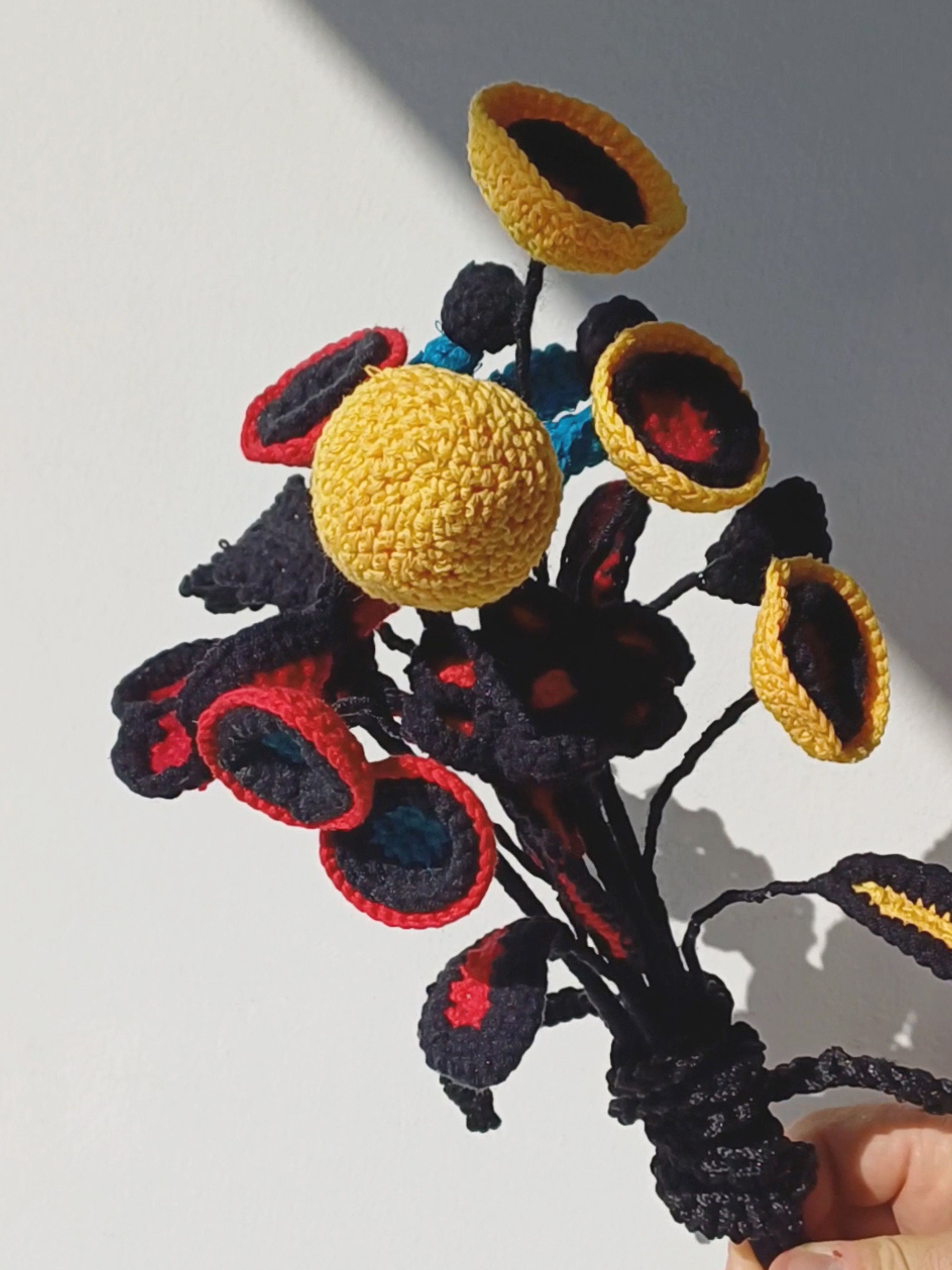 5 alien inspired crochet flower patterns for surreal décor, cosmic bouquets, and boldly unconventional handmade arrangements.