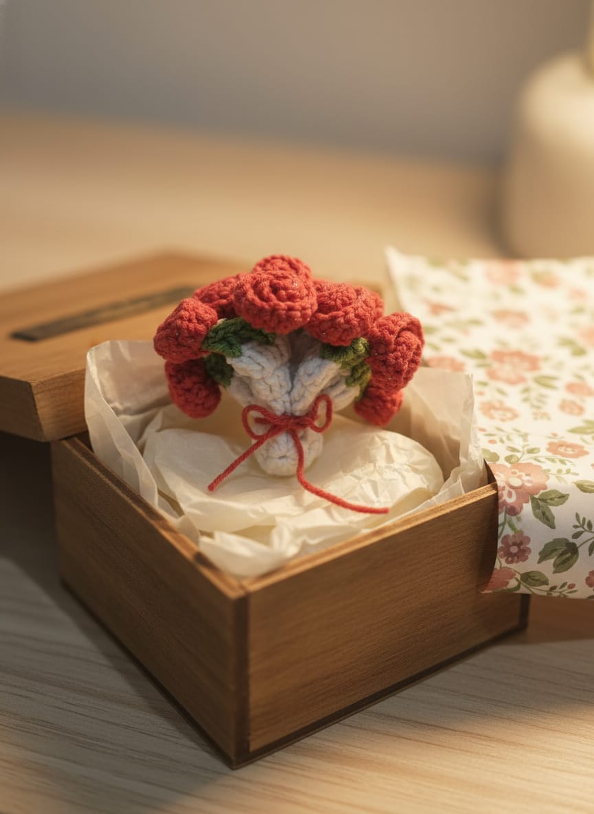 The pattern is beginner friendly and works up quickly using an easy one-strip method to form the roses. It’s a satisfying project that looks intricate but is simple to make, perfect for relaxed crafting or last-minute gift ideas.