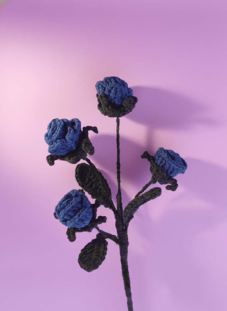 The pattern is beginner-friendly, versatile, and endlessly customizable. You may choose the number of roses and leaves you want it to have. Ideal whether you want to create a delicate accent or a bouquet that captivates with every stitch.