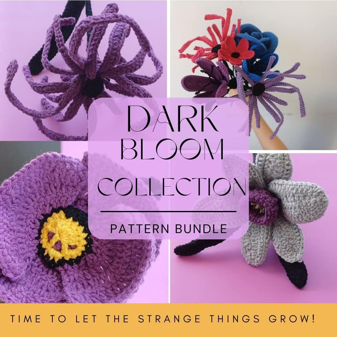 A curated bundle of 10 original crochet patterns inspired by gothic romance, night gardens, and flowers that refuse to be sweet.