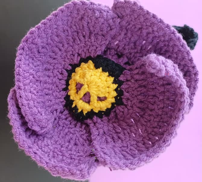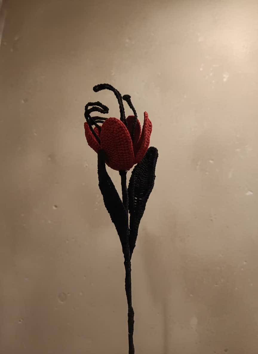 A cute flower with a touch of gothic charm. Easy to crochet, lovely to keep, lovelier to gift.