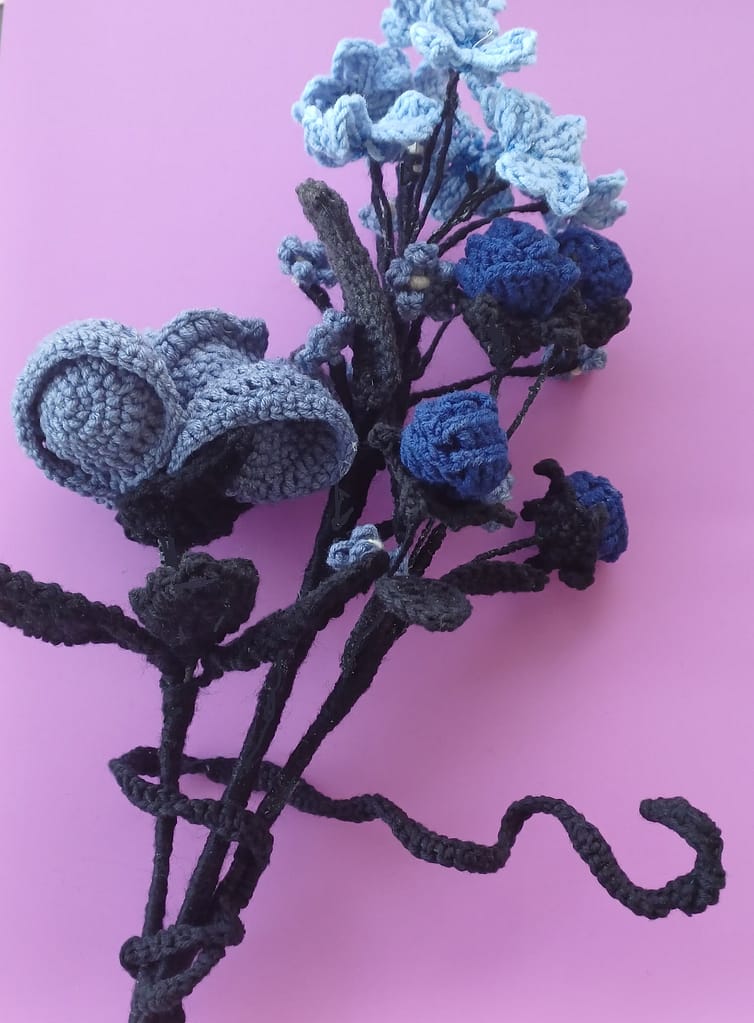 Now imagine that same idea in physical form: a moody crochet bouquet on your table. Instead of neon brightness, you get focus, calm, and a vibe that says this space is different. Dark florals don’t just decorate. They transform.