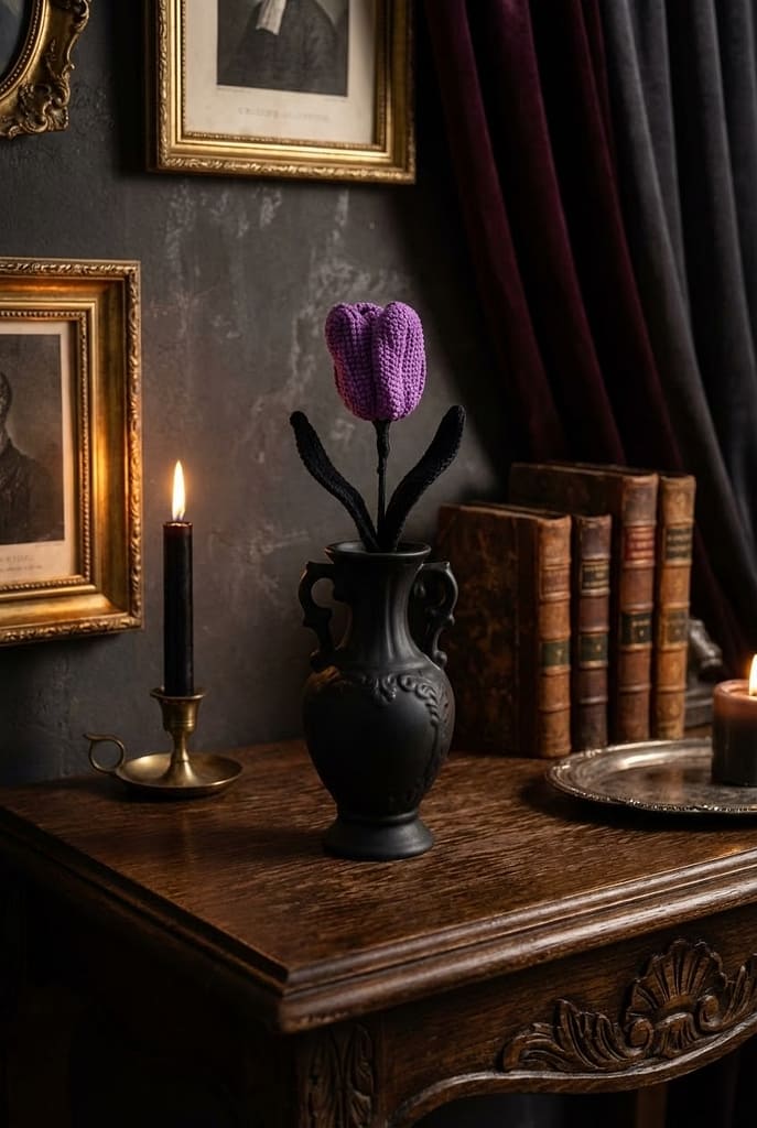 Discover gothic crochet gift ideas and patterns for dark romantics who love handmade blooms, moody d…